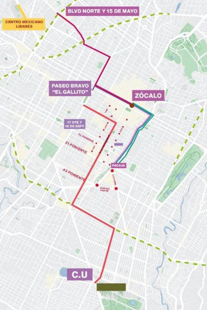 Las marchas comenzarán un poco antes del mediodía, es por eso que el Ayuntamiento de Puebla informó que las calles cerradas estarán repartidas desde Ciudad Universitaria (CU) de la Benemérita Universidad Autónoma de Puebla (BUAP), hasta el Bulevar Norte y 15 de Mayo. Estos serán los cierres viales: